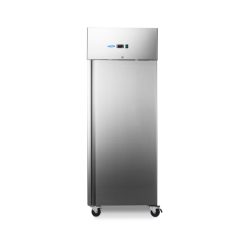 This powerful refrigerator is ideal for use in bakeries. With a total capacity of 800 l, you can keep a large number of products cool. The doors are self-closing and have an antibacterial rubber seal. You can place up to 10 height-adjustable shelves in this refrigerator. It comes standard with 10 sets of guide rails that accommodate shelves measuring 60 x 40 cm. There is also space to double the volume to 60 x 80 cm. You can order the shelves separately in the online store. This refrigerator is lockable and comes with two keys. If you need to move it to another part of the bakery, this is possible thanks to the four castors, two of which have brakes. What is inside the refrigerator is also easy to see, as it has energy-saving LED lighting inside.