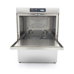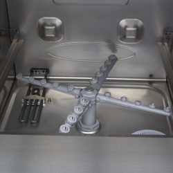 In professional kitchens, a fast and efficient dishwasher is essential for everyday dishwashing. Our dishwasher offers three complete wash programs of 55, 105 and 195 seconds, along with a pause function and a clear digital display. After the washing process, the dishes are rinsed with hot water for quick drying, ensuring they are ready for the next use. This dishwasher operates at a noise level of less than 70 dB, making it very quiet.