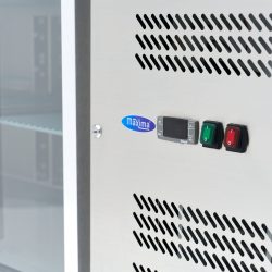 This is the largest counter-top refrigerator in the Maxima range, with at least four doors and a lockable compressor compartment. The counter-top refrigerator has six castors with brakes on the front wheels. This makes it easy to move around. The four glass doors have sturdy handles and a heated door seal to prevent frost. The doors close themselves thanks to a magnetic door seal, which ensures that no cold air is lost when the door is not closed properly. You can also easily see where your things are stored, reducing the need to open the door unnecessarily. When you need to order ingredients, you can quickly see what your stock is.