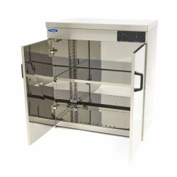 El interior de este calentador de platos se puede calentar de 30 a 85 °C con solo girar el botón de ajuste de temperatura. Una luz indicadora avisa cuando se ha alcanzado la temperatura deseada y los platos están listos para usar. Las bandejas interiores son regulables en altura para que pueda adaptarlas a sus necesidades. Además, cuenta con dos puertas frontales fáciles de abrir y cerrar.