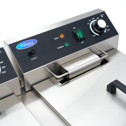 Cette friteuse double robuste fonctionne sur 230 V et est équipée de deux prises standard, ce qui la rend polyvalente et idéale pour les cuisines, les food trucks et les friteries. Chaque friteuse dispose d'une généreuse capacité d'huile allant jusqu'à 13 litres, vous permettant de préparer facilement de grandes quantités de frites.
