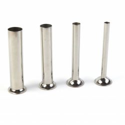 Ce lot de quatre tubes de remplissage en acier inoxydable est compatible avec les remplisseuses à saucisses et churros Maxima. Il comprend des tubes de 16 mm, 22 mm, 32 mm et 38 mm de diamètre, permettant ainsi de choisir facilement la taille adaptée, des saucisses fines aux churros plus imposants. Robustes, durables et faciles à nettoyer, ces tubes constituent un accessoire indispensable pour les bouchers, les boulangers et les cuisines professionnelles.