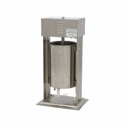 Dans les boucheries et autres établissements de restauration, on remplit quotidiennement de nombreuses saucisses. Grâce à cette machine à saucisses automatique de 20 litres, vous pouvez les remplir rapidement et efficacement. Entièrement en acier inoxydable, cette machine professionnelle est fournie avec quatre tubes de remplissage de diamètres respectifs de 16, 22, 32 et 38 mm. Une pédale est également incluse pour actionner la machine, vous laissant ainsi les mains libres pour remplir et retourner les saucisses avec précision. Le plateau de pression, muni d'un orifice de ventilation et étanche grâce à un joint, empêche l'air de pénétrer dans les saucisses lors du retournement. La machine propose dix vitesses différentes, vous permettant ainsi de toujours trouver la vitesse idéale pour un dosage parfait.
