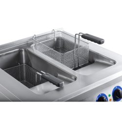 Elektromos olajsütő EF-213/700 D, 2 x 13 liter, teljesen rozsdamentes konstrukció minőségi élelmiszeripari acélból AISI 304 – EN 1.4301