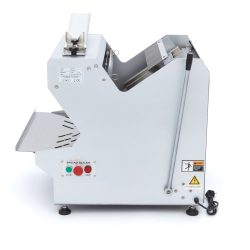 Questa affettatrice per pane è realizzata in acciaio rivestito, resistente e progettata per affettare una varietà di pane. Le nostre affettatrici per pane sono disponibili per diversi spessori di pane. Questa macchina ha lame seghettate in acciaio inossidabile distanziate di 10 mm.