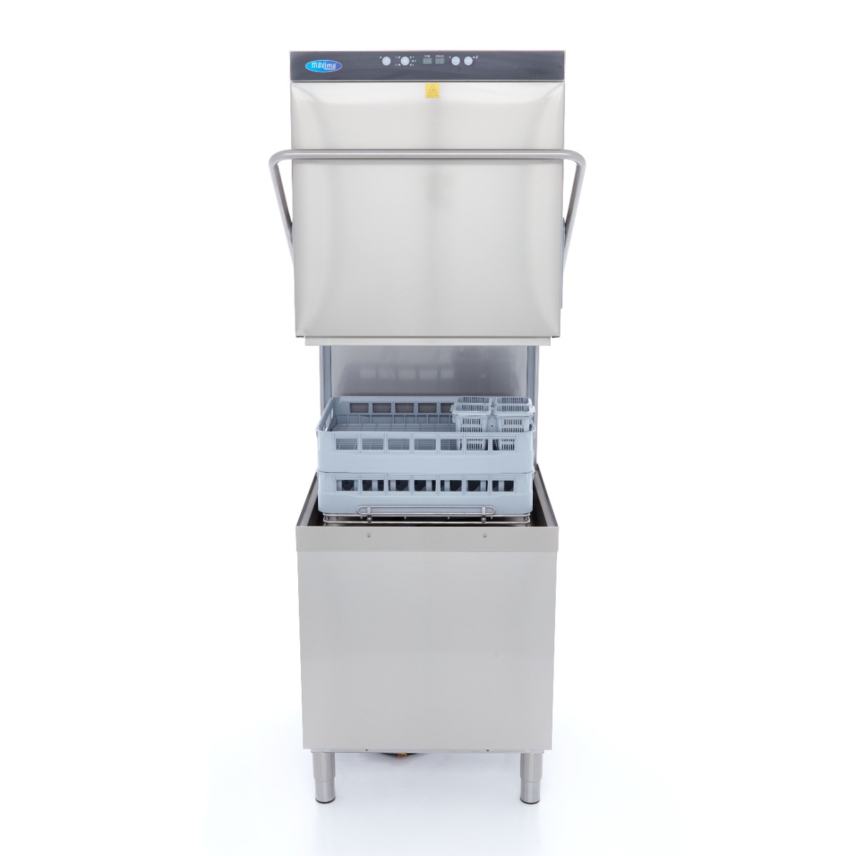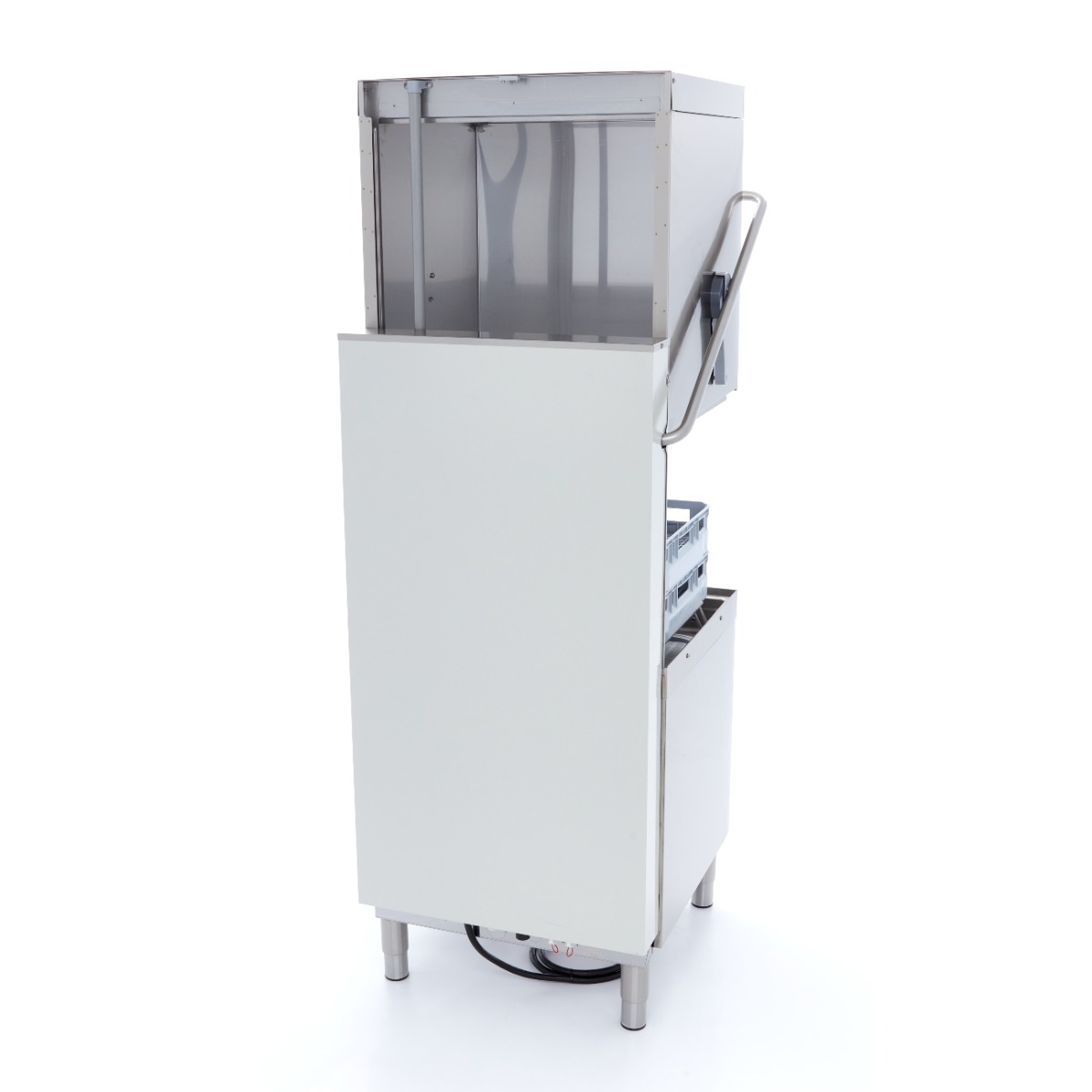 Nelle grandi strutture di ristorazione che gestiscono una grande quantità di stoviglie sporche, questa lavastoviglie a capot è una risorsa preziosa. È possibile passare rapidamente i cestelli, rendendo la movimentazione delle stoviglie molto efficiente. Questa lavastoviglie professionale ha tre programmi di lavaggio: 60, 120 e 150 secondi. La temperatura di lavaggio è di 60 °C e il ciclo di risciacquo è di 80 °C, il che consente un'asciugatura più rapida. È anche una lavastoviglie molto silenziosa, con una rumorosità inferiore a 65 dB. Questa lavastoviglie consuma solo 2,4 l di acqua per ciclo. Ha un pannello di controllo con protezione IPX4, quindi l'acqua non penetra dietro i pulsanti facili da usare. Contiene quattro pulsanti: il pulsante on/off, il pulsante start/stop per il ciclo di lavaggio, il pulsante per l'impostazione del programma di lavaggio e il pulsante per l'avvio della pompa di scarico. Questa lavastoviglie è inoltre dotata di indicatori di temperatura e di risciacquo.