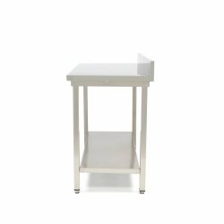 Un solido tavolo professionale è una risorsa preziosa in ogni cucina gastronomica. Un'attrezzatura da cucina adeguata consente al personale di lavorare in modo sicuro ed efficiente. Questo lussuoso tavolo da lavoro è indispensabile. Il tavolo ha un solido piano in acciaio inox, rinforzato con due ponti. Inoltre, ha una capacità di carico di 150-200 kg. In questo modo, non solo è possibile completare tutti i lavori di preparazione dei cibi, ma anche riporre facilmente vari elettrodomestici da cucina sul bancone. Le gambe quadrate da 4 x 4 cm sono regolabili in altezza per un lavoro ergonomico.
