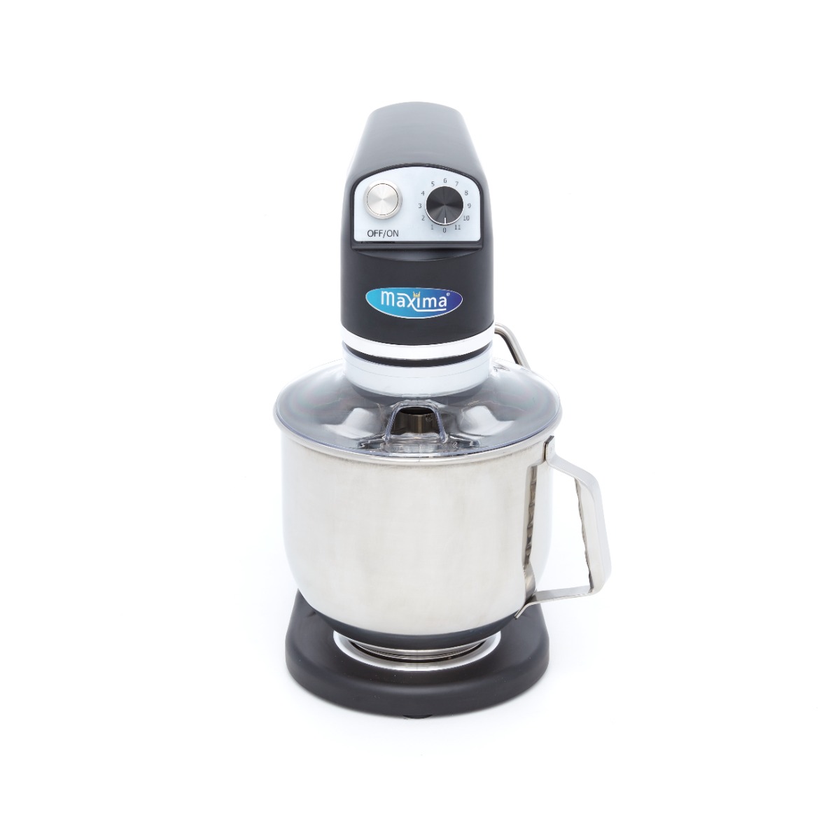 Questa impastatrice planetaria professionale è molto facile e comoda da usare. La leva apre l'impastatrice, facilitando la rimozione della ciotola o la sostituzione degli accessori. La testa dell'apparecchio è dotata di un interruttore di sicurezza, che arresta automaticamente l'apparecchio quando la testa viene sollevata. L'accensione e lo spegnimento avvengono tramite pulsanti di avvio e arresto separati. Per evitare il contatto con le parti mobili durante il funzionamento, il prodotto è dotato di una copertura protettiva in plastica. È inoltre possibile aggiungere ingredienti durante l'impasto o la miscelazione utilizzando l'apertura sopra la ciotola. Tutti i singoli componenti in acciaio inox sono lavabili in lavastoviglie.