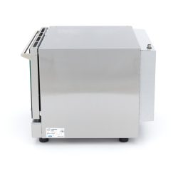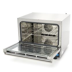 Tato kombinovaná parní trouba je ideální pro důsledné vaření. Výkonná topná tělesa z nerezové oceli zajišťují kompletní i efektivní distribuci tepla. Kromě toho je konvektomat vybaven ventilátorem s reverzní funkcí a dvojitým atermickým zasklením. Dvířka se velmi snadno nastavují a těsnění dvířek je vyrobeno z potravinářského silikonu. Na přehledném ovládacím panelu najdete tlačítka pro ovládání páry, teploty a časovače. Má široký teplotní rozsah, takže v ní můžete uvařit téměř cokoli. Obsahuje také časovač, který vám umožní nechat ji vařit, zatímco se budete věnovat jiným úkolům. A konečně tlačítko páry umožňuje nastavit přesné procento páry, které si přejete.