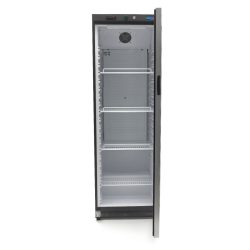 Ao trabalhar com ingredientes frescos, é importante ter um refrigerador que mantenha tudo refrigerado pelo maior tempo possível. Este refrigerador profissional preto tem capacidade total de 400 litros e está equipado com quatro prateleiras ajustáveis. Isso permite que você escolha a melhor disposição de acordo com suas necessidades. Ele também oferece a flexibilidade de expandir o número de prateleiras com compartimentos adicionais. A porta de vidro inclui uma trava que permite visualizar os produtos refrigerados sem precisar abrir o refrigerador.