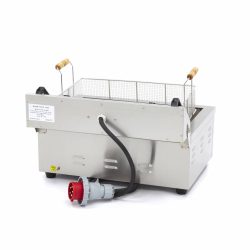 Você prepara grandes quantidades de alimentos em sua cozinha profissional? Esta fritadeira extragrande de 20 litros é um excelente complemento para qualquer padaria, peixaria, loja de fish and chips ou outro estabelecimento de alimentação. Os clientes não precisam mais esperar enquanto você frita com maestria grandes porções de peixe, batatas fritas e outros petiscos fritos. Esta fritadeira profissional possui dois elementos de aquecimento com temperatura ajustável por um termostato preciso. Você pode escolher a temperatura desejada entre 50 °C e 200 °C. Ela também está equipada com um prático indicador luminoso que mostra quando o óleo está pronto. A fritadeira funciona com energia de 400 V.