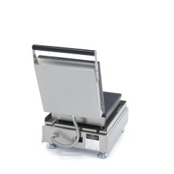 Após desligar o aparelho, retire-o da tomada e limpe as placas enquanto ainda estiverem mornas ao toque. Esta máquina de waffles profissional permanece estável durante o uso graças aos seus pés de aço inoxidável.