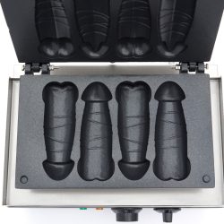 Com a máquina de waffles em formato de pênis, você pode assar 4 waffles de uma só vez de forma rápida e fácil. A máquina de waffles é de alta qualidade e adequada para uso profissional em food trucks ou para a organização de eventos. A máquina de waffles em formato de pênis possui uma assadeira de alumínio com superfície antiaderente. A parte externa é feita de aço inoxidável e é fácil de limpar. A máquina de waffles possui um potente elemento de aquecimento, que aquece a forma rapidamente e a mantém aquecida com facilidade.