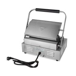 Na tomto profesionálnom kontaktnom grile môžete pripravovať lahodné panini alebo veľké sendviče. Na dvoch liatinových plechoch na pečenie môžete tiež vyprážať ďalšie potraviny, ako je mäso, zelenina a ryby. Vďaka drážkovanému povrchu je tento kontaktný gril mimoriadne všestranný. Horné aj spodné dosky sú drážkované, čo na potravinách vytvára charakteristický grilovací vzor. Tento kontaktný gril je veľmi vhodný na použitie v každej profesionálnej kuchyni a vďaka vysoko kvalitným materiálom vydrží intenzívne každodenné používanie.