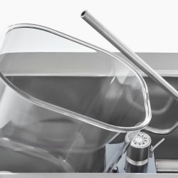 Tento robustný šľahačkový stroj má výrobnú kapacitu až 100 l čerstvo ušľahanej smotany za hodinu. Rotačné čerpadlo je schopné spracovať ľahké aj ťažké krémy, aby ste získali hladkú a stabilnú štruktúru. Môžete ho použiť nielen na výrobu šľahačky, ale tekutú smotanu aj šľahačku je možné v tomto prístroji tiež chladiť. Tekutá smotana zostáva v nádrži s objemom 2 l trvalo schladená na teplotu 4⁰C, ktorú je možné ľahko odčítať pomocou digitálneho ukazovateľa teploty. Pretože je nádoba chladená nepriamo, nedochádza k oddeleniu tuku a vody. Spotrebič je tiež vybavený systémom chladenia vzduchom a používa sa chladivo R290. Okrem toho je možné vďaka priehľadnému veku ľahko zistiť, koľko tekutej smotany sa v nádržke nachádza. Ide tiež o veľmi tichý prístroj s jednoduchými, ale robustnými ovládacími tlačidlami.