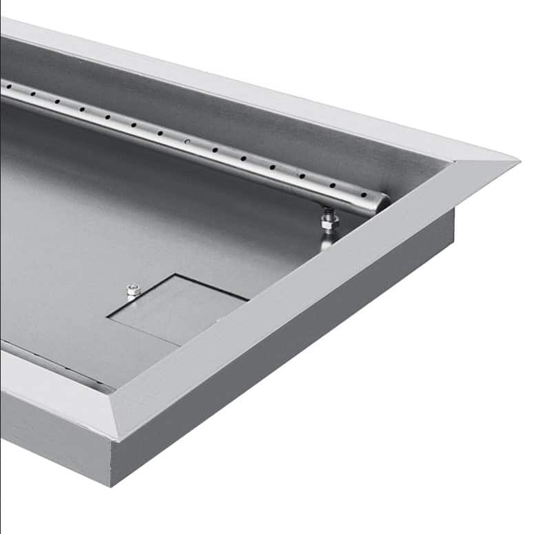 - Den rekommenderade mängden eldfast glas i denna eldstad är cirka 22,68 kg, lavastenar kan också användas